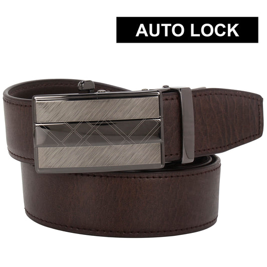 Labnoft Men's Auto-Lock PU Leather Belt, Brown