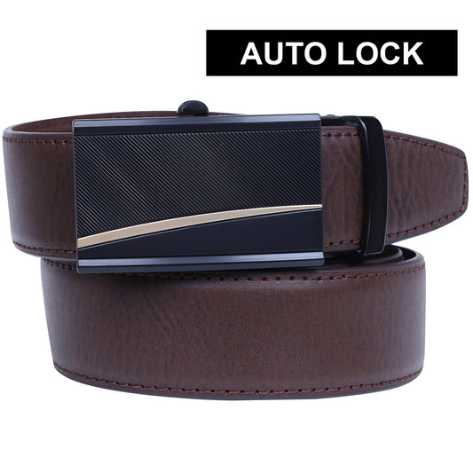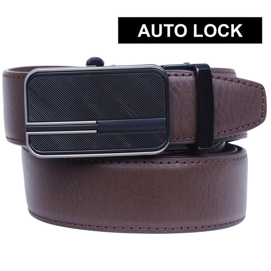 Labnoft Men's Auto-Lock PU Leather Belt, Brown