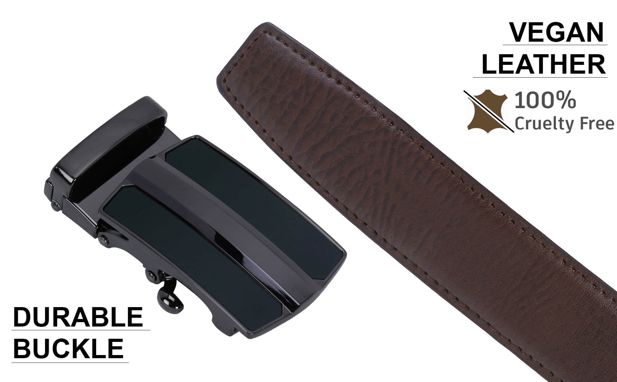 Made from full-grain vegan synthetic leather (Pu-Leather). Handcrafted for those who do not like animal leather products. Complemented with a stylish scratch-resistant zinc alloy buckle that is elegantly designed with class.