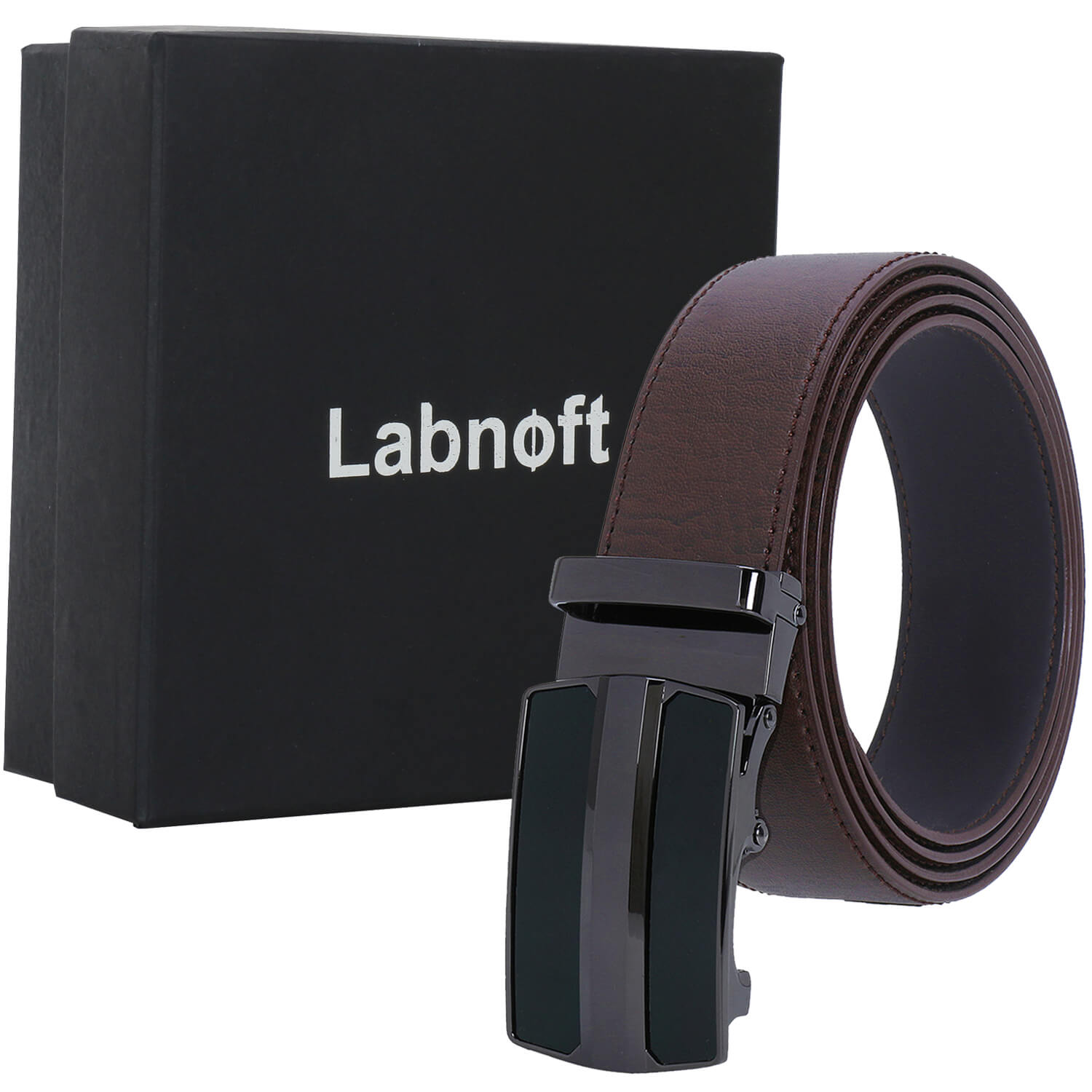 Labnoft Men's Auto-Lock PU Leather Belt, Brown