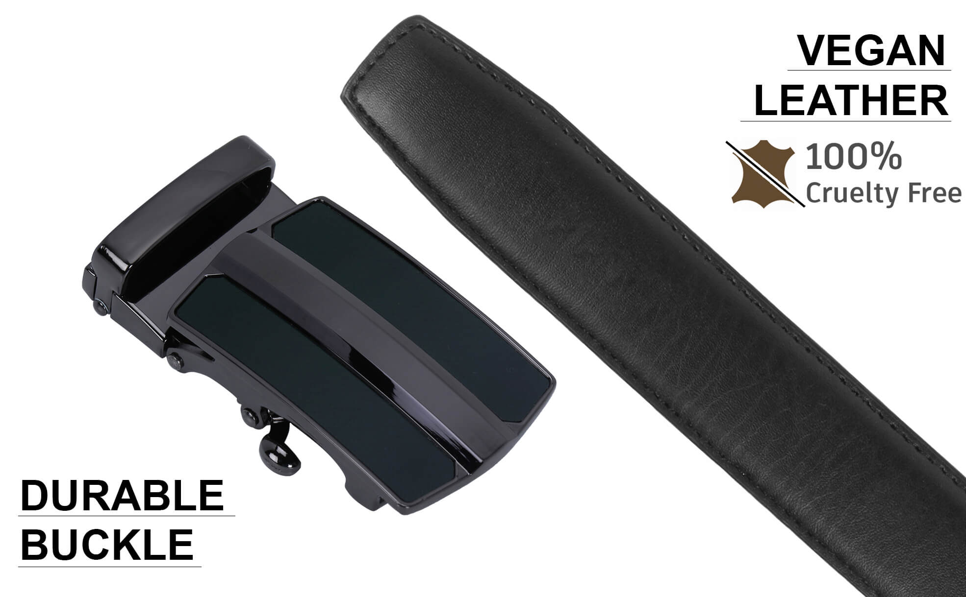 Labnoft Men's Auto-Lock PU Vegan Leather Belt, Black