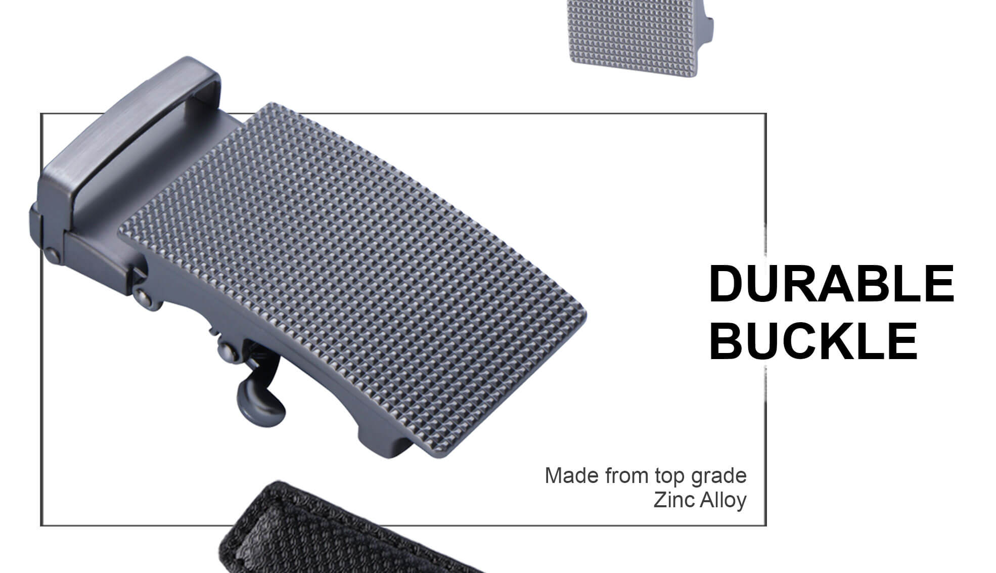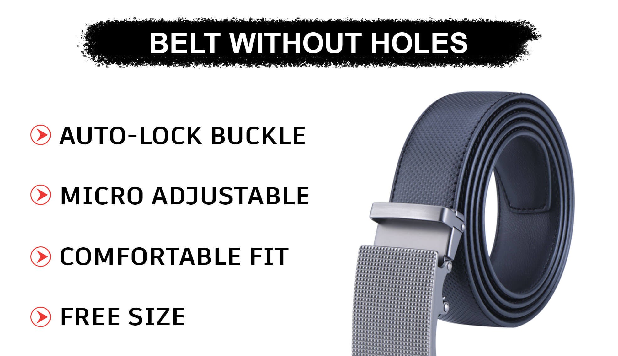 Introducing a unique sliding mechanism. No pushing. No pulling. Just slide the belt into the buckle and adjust for a superbly comfortable fit. This buckle simply auto-locks the belt. To release, just gently push the lever.