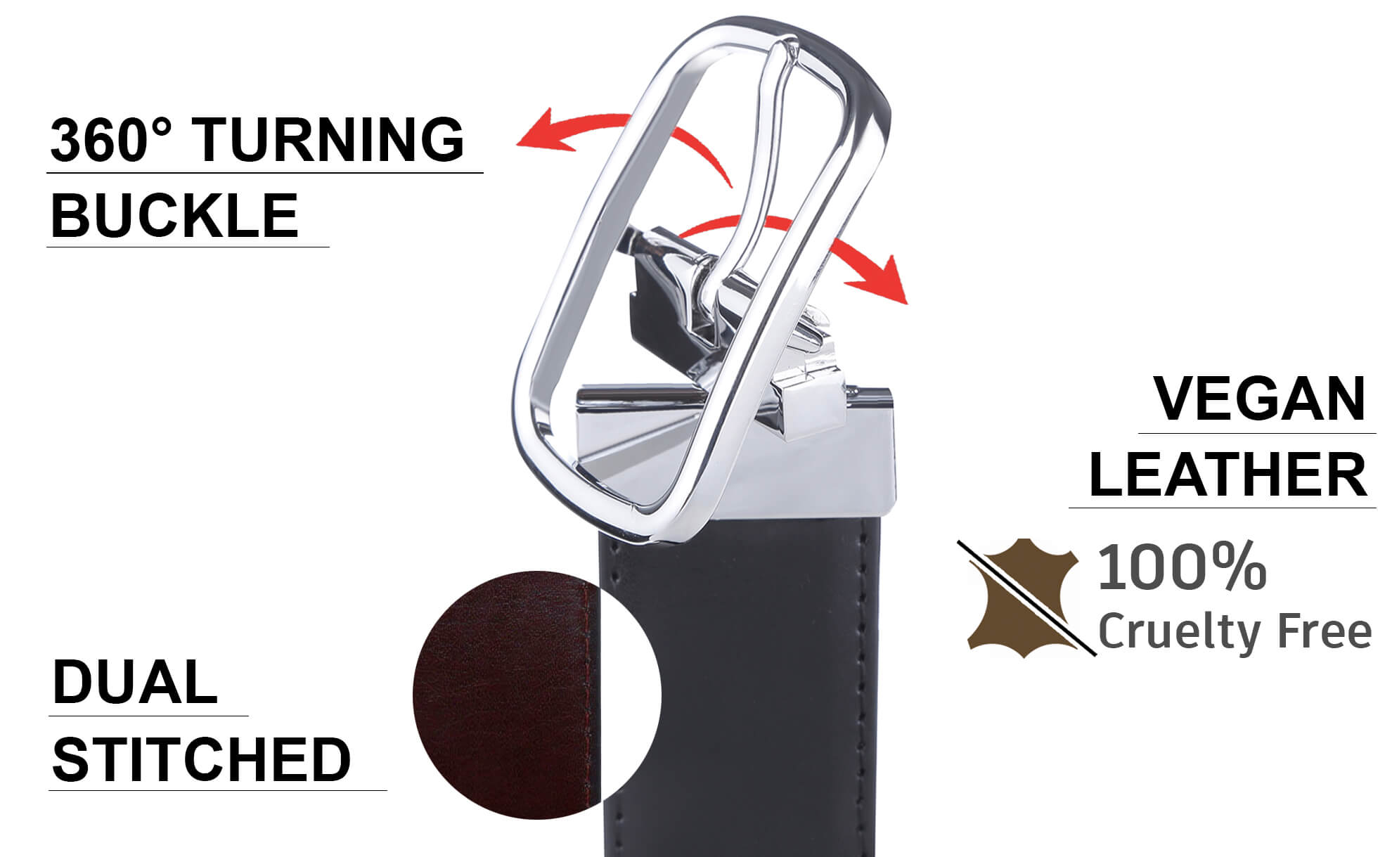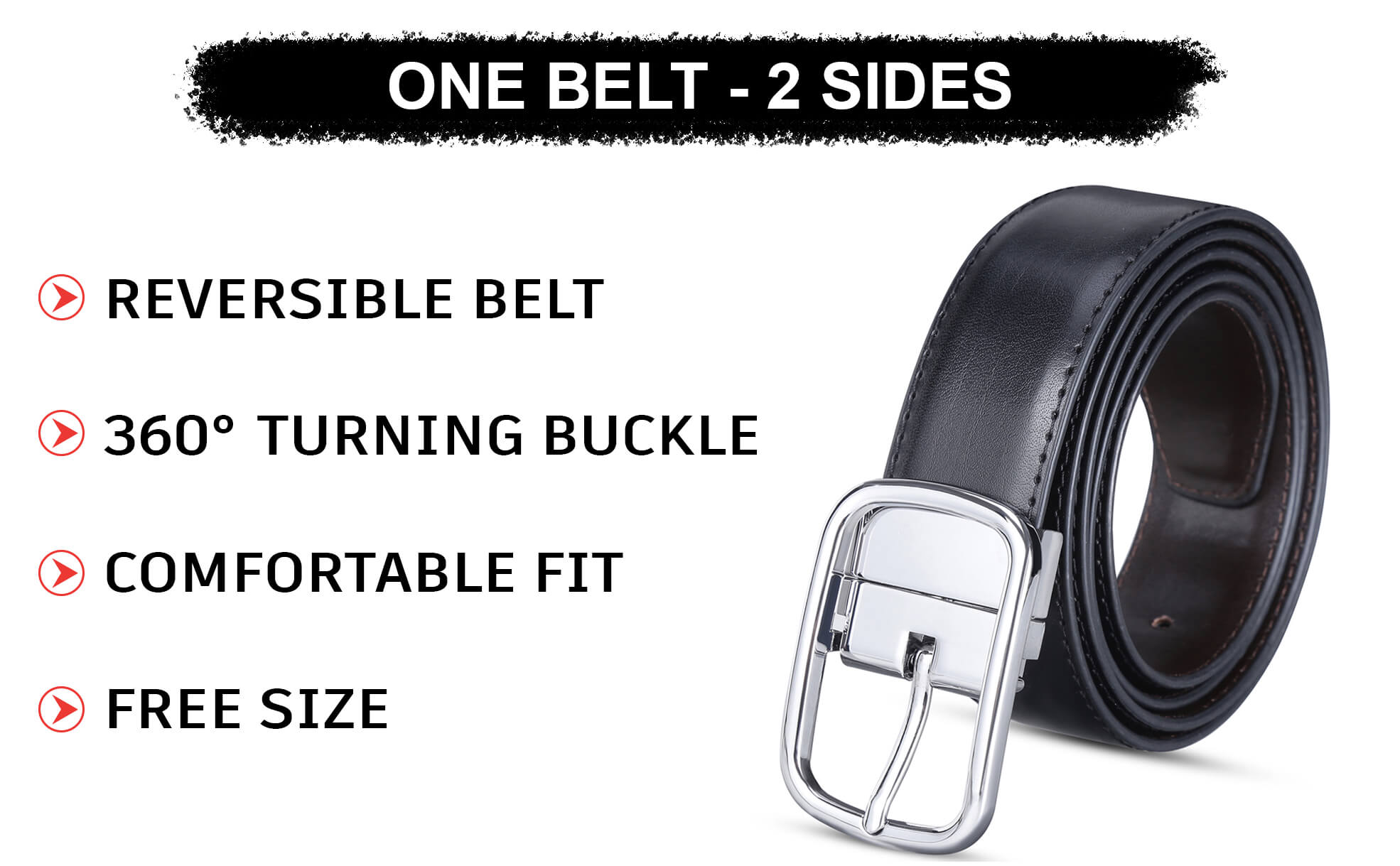 Introducing the automatic turning buckle and reversible belt. Now you can choose either from the two sides (Black or Brown) to change your style depending on the dress. Simply pull and twist the buckle to change the sides.